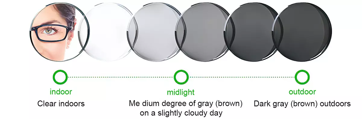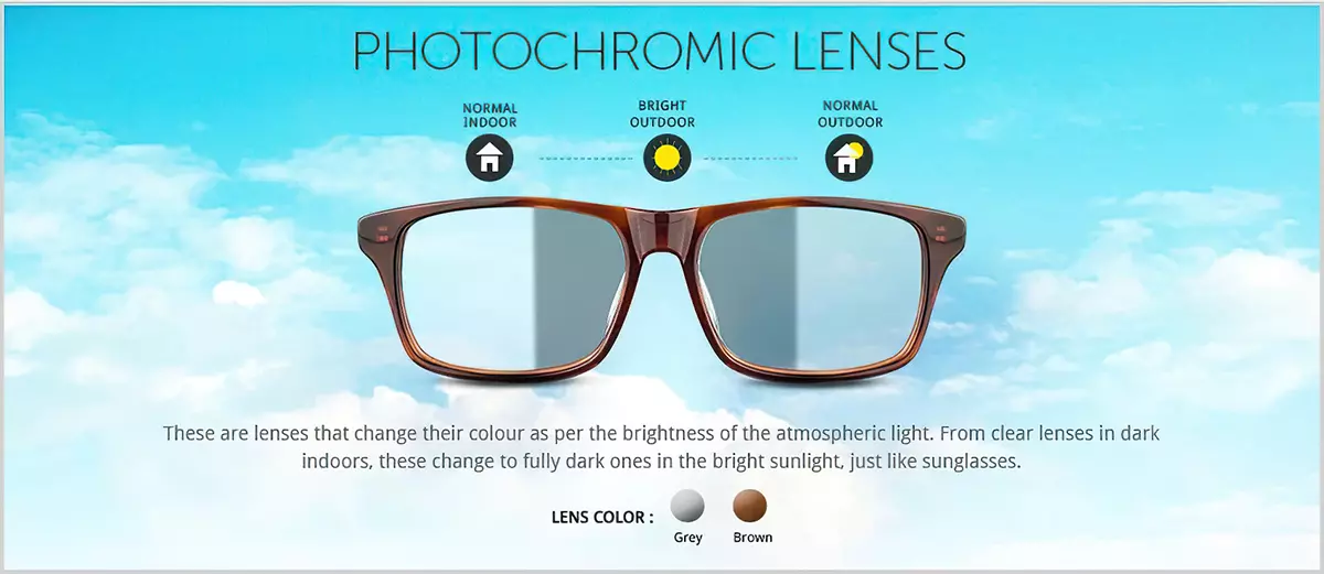 Photochromic lenses are available in nearly all lens materials and designs, including high indexes , bifocal and progressive. An added benefit of photochromic lenses is that they shield your eyes from 100 percent of the sun’s harmful UVA and UVB rays.
